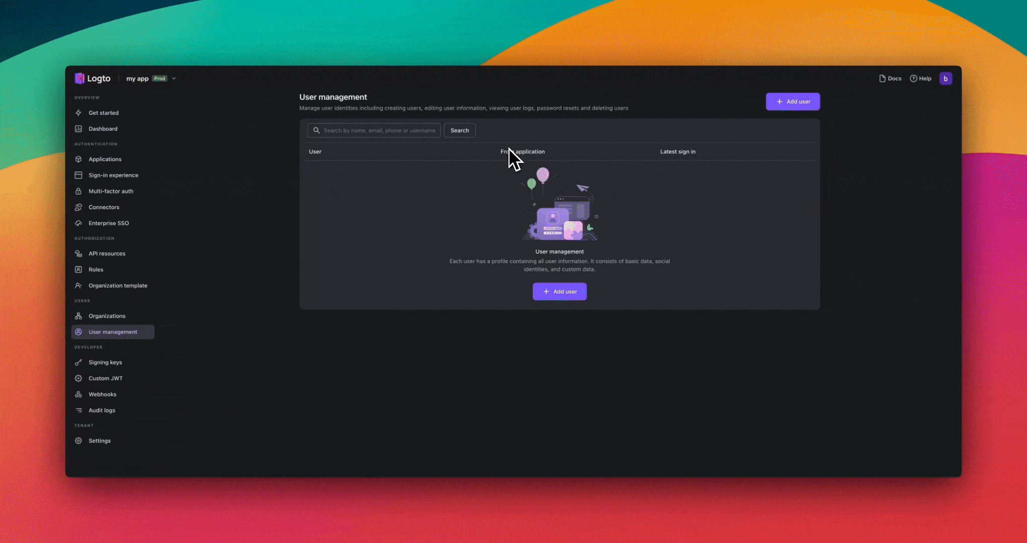 - Go to the User Management section in your Logto dashboard.